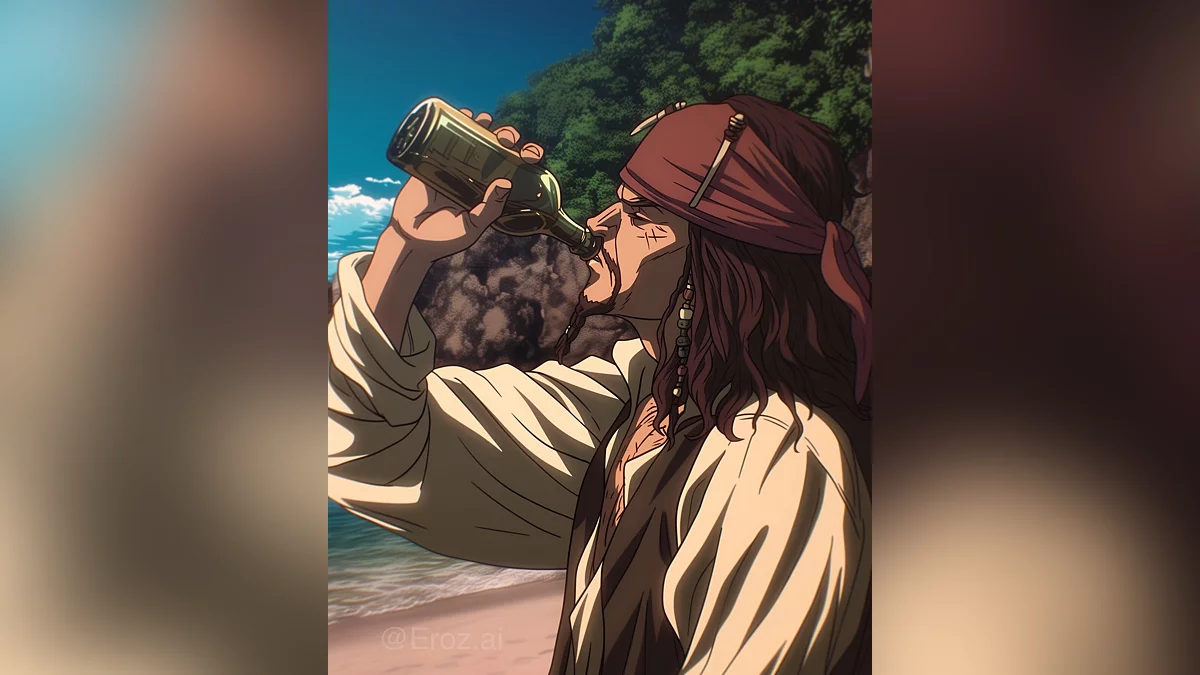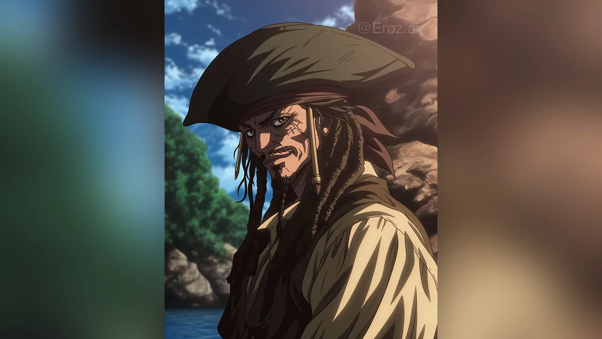 Користувач з ніком eroz.ai знову скористався нейромережею Midjourney, щоб перенести популярних персонажів у світ японського аніме. Цього разу він показав у цьому стилі героїв «Піратів Карибського моря».