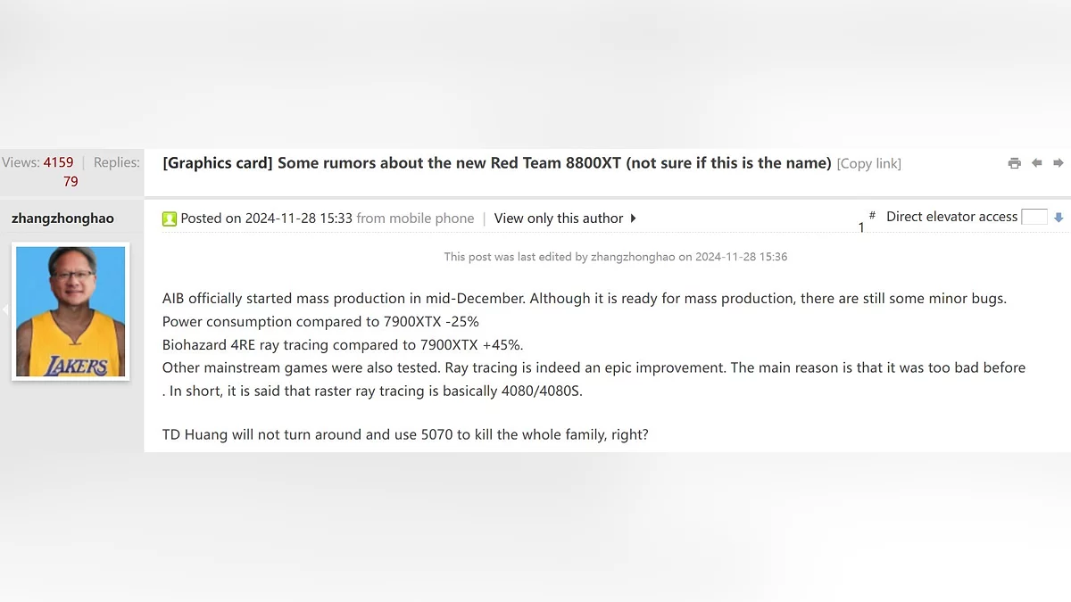 За інформацією від інсайдера форуму Chiphell, випуск чіпів RDNA 4 розпочнеться у грудні, а презентація відбудеться на CES 2025. Відеокарта продемонструє відмінні результати у трасуванні променів у іграх на кшталт Resident Evil 4 Remake та інших популярних проєктах. Інформація підтверджує, що AMD активно працює над покращенням підтримки ІІ та трасування променів у нових продуктах.