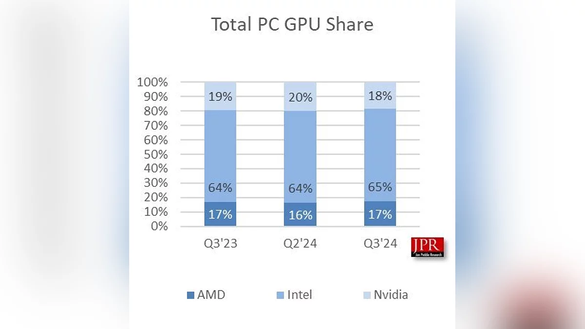 Аналітичне агентство Jon Peddie Research представило звіт про світові поставки графічних процесорів за третій квартал 2024 року. Головним відкриттям стало лідерство Intel у сегменті, що, однак, пов'язано з урахуванням інтегрованих GPU (iGPU), вбудованих у процесори.