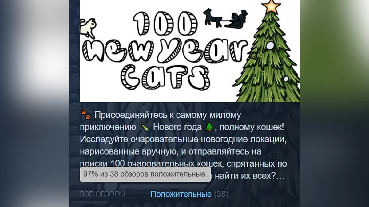 100 New Year Cats — гра про пошук котів на великому новорічному арті. Сторінка в Steam.