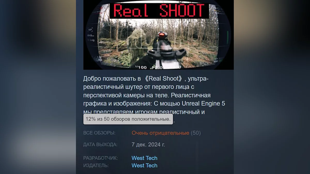В Steam з'явився ще один шутер, натхненний Unrecord. До 15 грудня проект, що отримав назву Real Shoot, можна придбати зі знижкою 25% за 487 гривень.