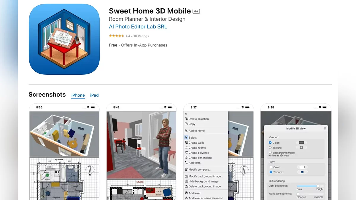 - Sweet Home 3D Mobile — програма з 3D-графікою, що дозволяє створювати макети дизайну приміщень (завантажити безкоштовно).