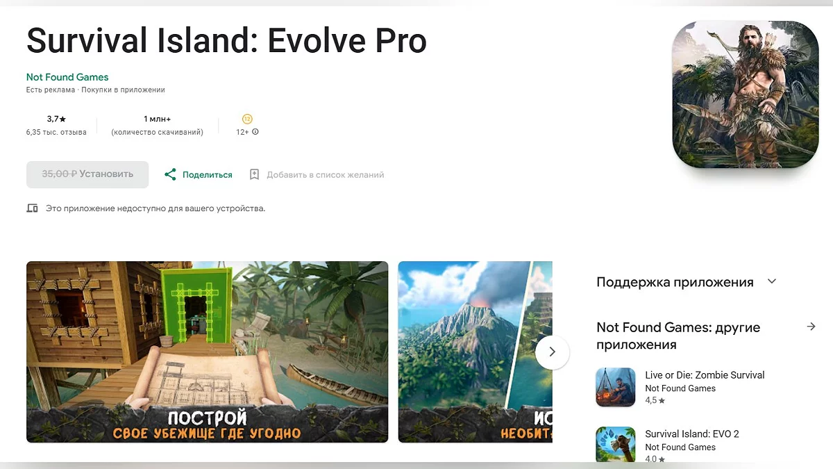 - Survival Island: Evolve Pro — симулятор виживання в сеттингу, в якому гравцеві потрібно опинитися на острові, наповненому небезпечними тваринами та пастками (завантажити безкоштовно);