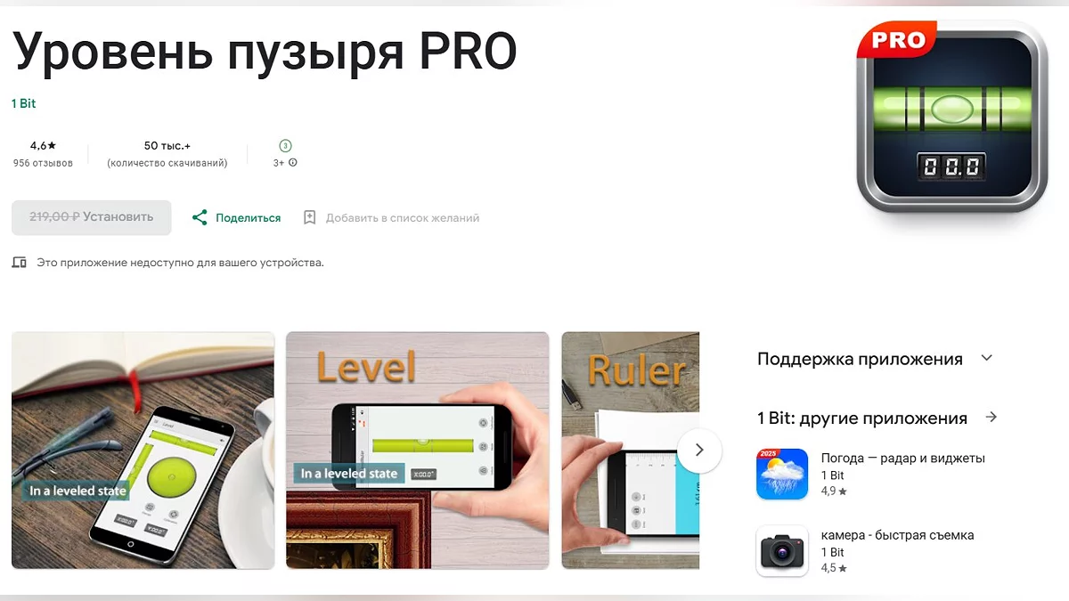 - Bubble Level PRO — цифровий будівельний рівень, який допоможе в випадках, коли потрібно щось вирівняти (завантажити безкоштовно);