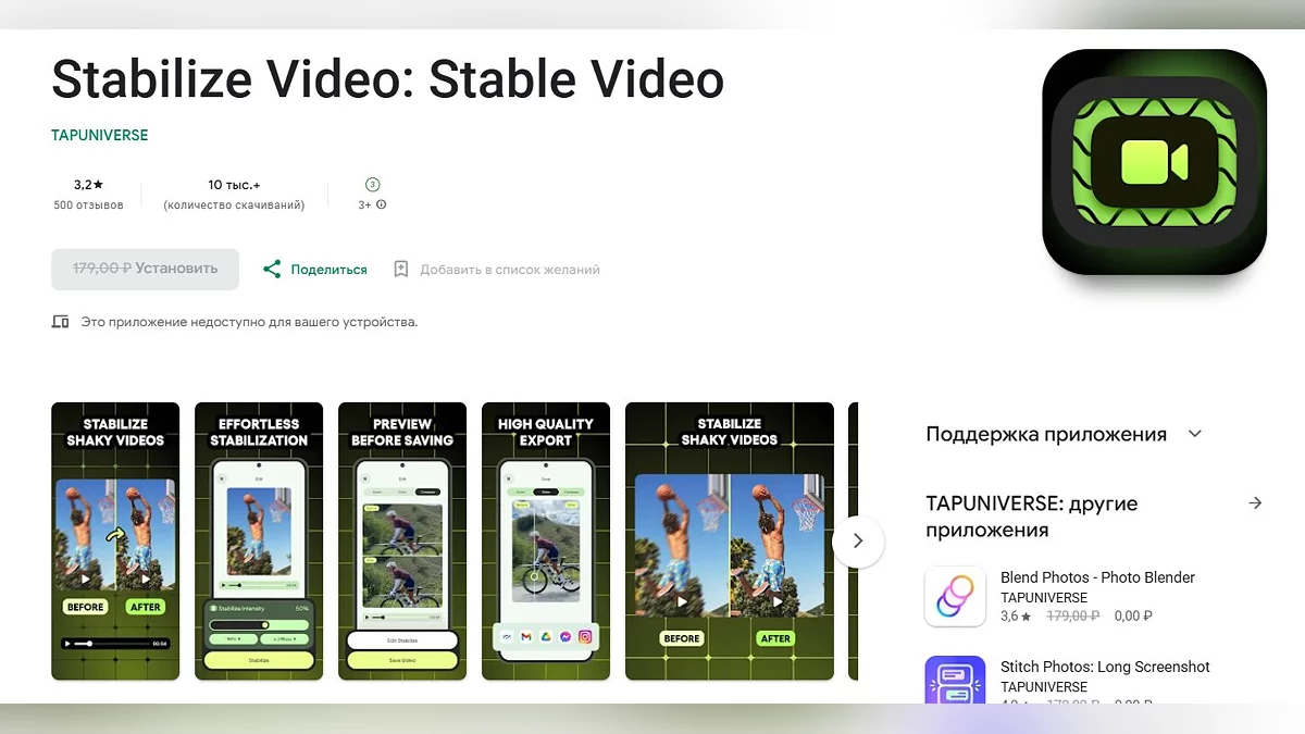 - Stabilize Video: Stable Video — програма, що дозволяє провести цифрову стабілізацію відео (завантажити безкоштовно).