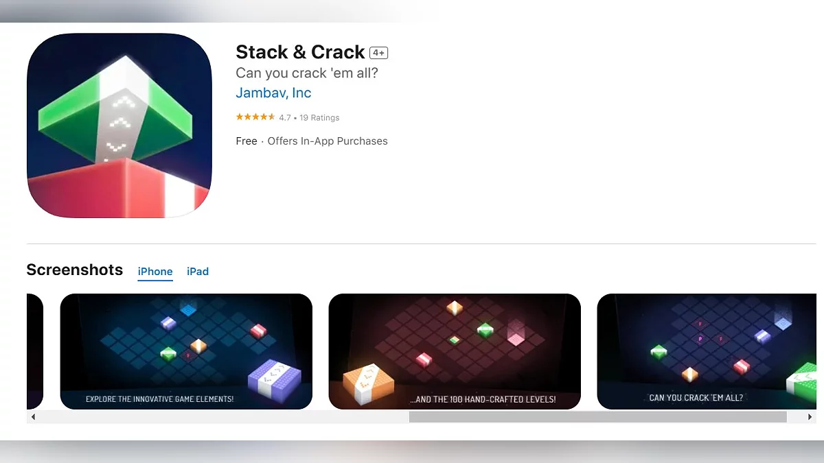 - Stack & Crack — головоломка з чотирма квадратами (завантажити безкоштовно);