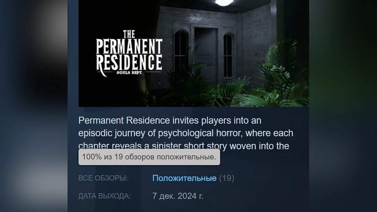 The Permanent Residence: Souls Kept — короткий хорор про музиканта, який повинен розкрити зловісну історію похмурого особняка. Проект отримав 100% рейтингу. Сторінка в Steam.