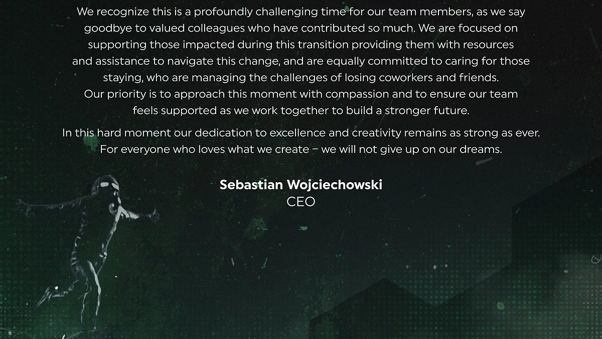 Войцеховскі зазначив, що ринок відеоігор продовжує розвиватися, і компанія повинна адаптуватися до поточної ситуації. Він також заявив, що компанія подвоїть свої зусилля, укладаючи нові контракти та зосереджуючись на створенні власної незалежної гри.