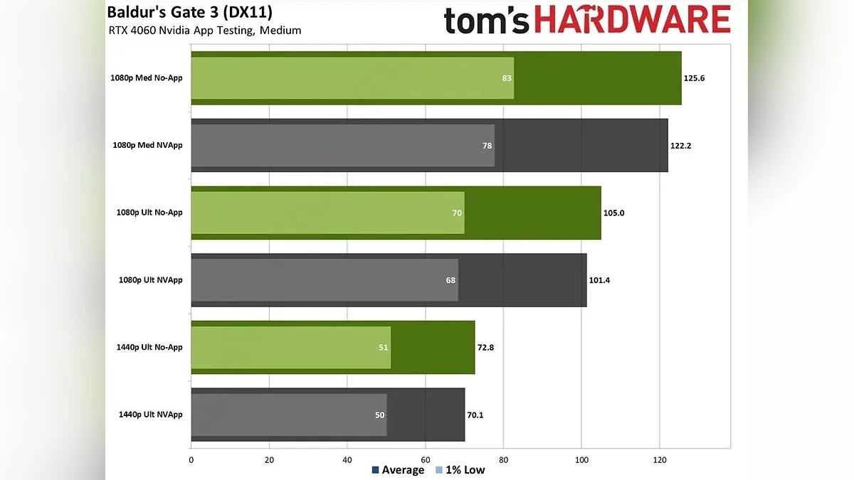 Наприклад, ось яка частота кадрів у іграх з NVIDIA App і без нього: