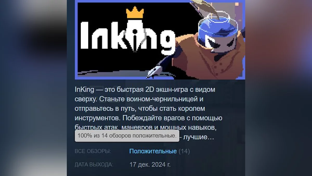 InKing — екшен-рогалик у дусі Vampire Survivors. Має 100% рейтингу. Сторінка в Steam.