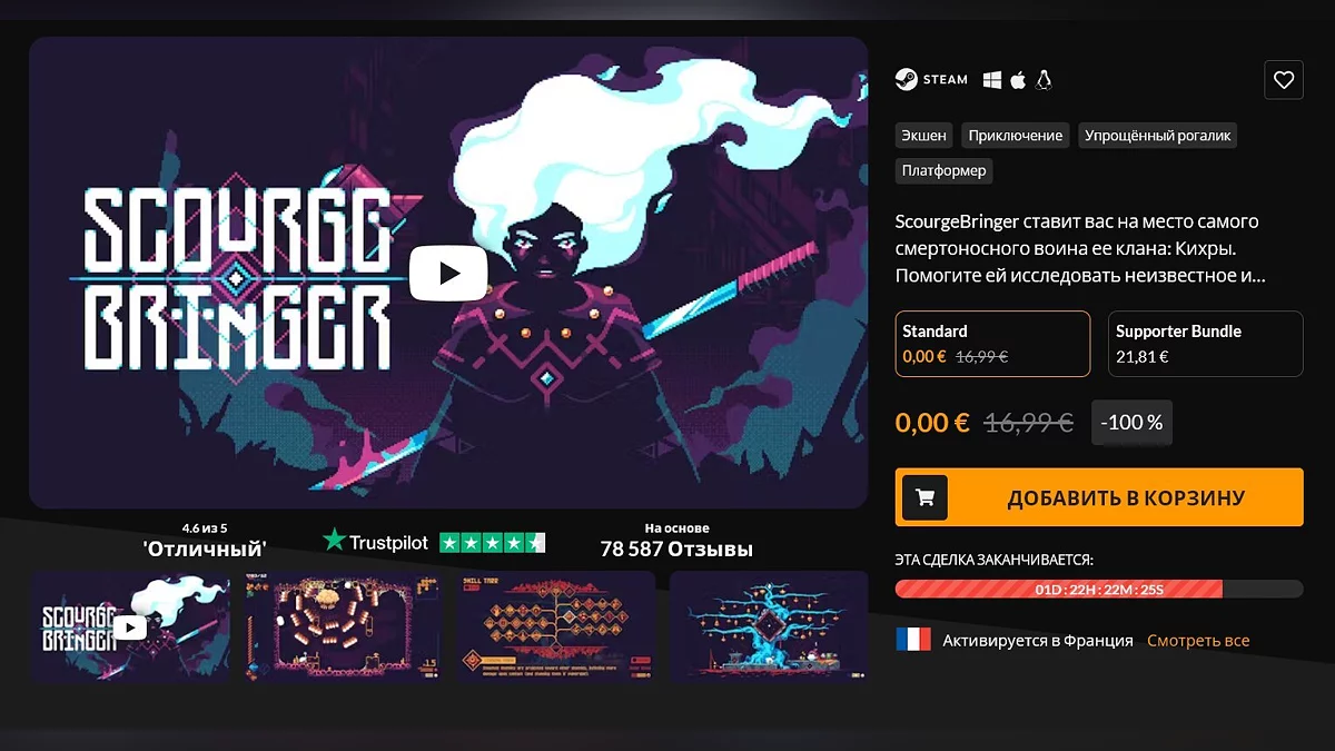 Стартувала ще одна безкоштовна роздача гри для Steam. Йдеться про roguelite-платформер під назвою ScourgeBringer, який отримав від геймерів 88% позитивних відгуків. Крім того, проект підтримує колекційні картки.