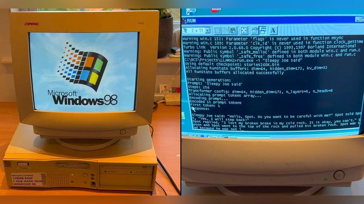 Представлений дивовижний експеримент з запуску мовної моделі Llama 2 на старому ПК з Windows 98. Дослідники поділилися результатами роботи у вигляді короткого відеоролика на платформі X, в якому показані унікальні етапи проєкту. Однією з основних складностей стала завантаження даних моделі через протокол FTP на старий ПК з процесором з частотою 350 МГц.