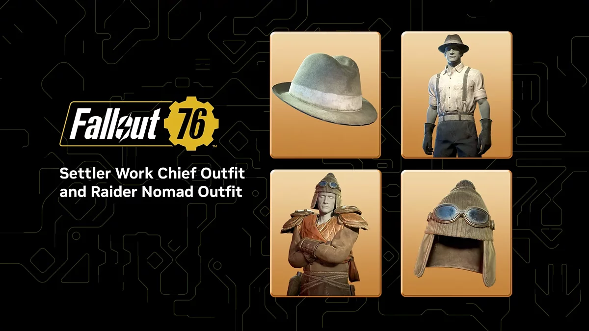 - Fallout 76 — комплект одягу керівника поселенців і комплект одягу кочівника-рейдера;