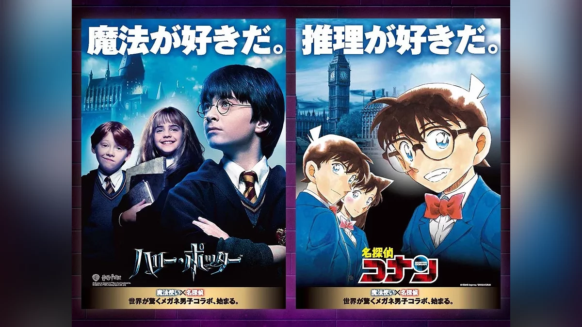 Офіційний аккаунт Shonen Sunday (щотижневий японський журнал) раптово повідомив про колаборацію аніме та манги Detective Conan з франшизою «Гаррі Поттер». На честь цього було опубліковано два зображення.