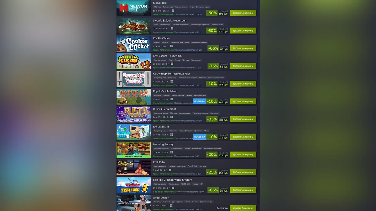 Компанія Valve запустила в сервісі Steam нову розпродаж, що отримала назву Idler Fest 2025. В акції, яка триватиме до 10 лютого, взяли участь сотні Idle-ігор.