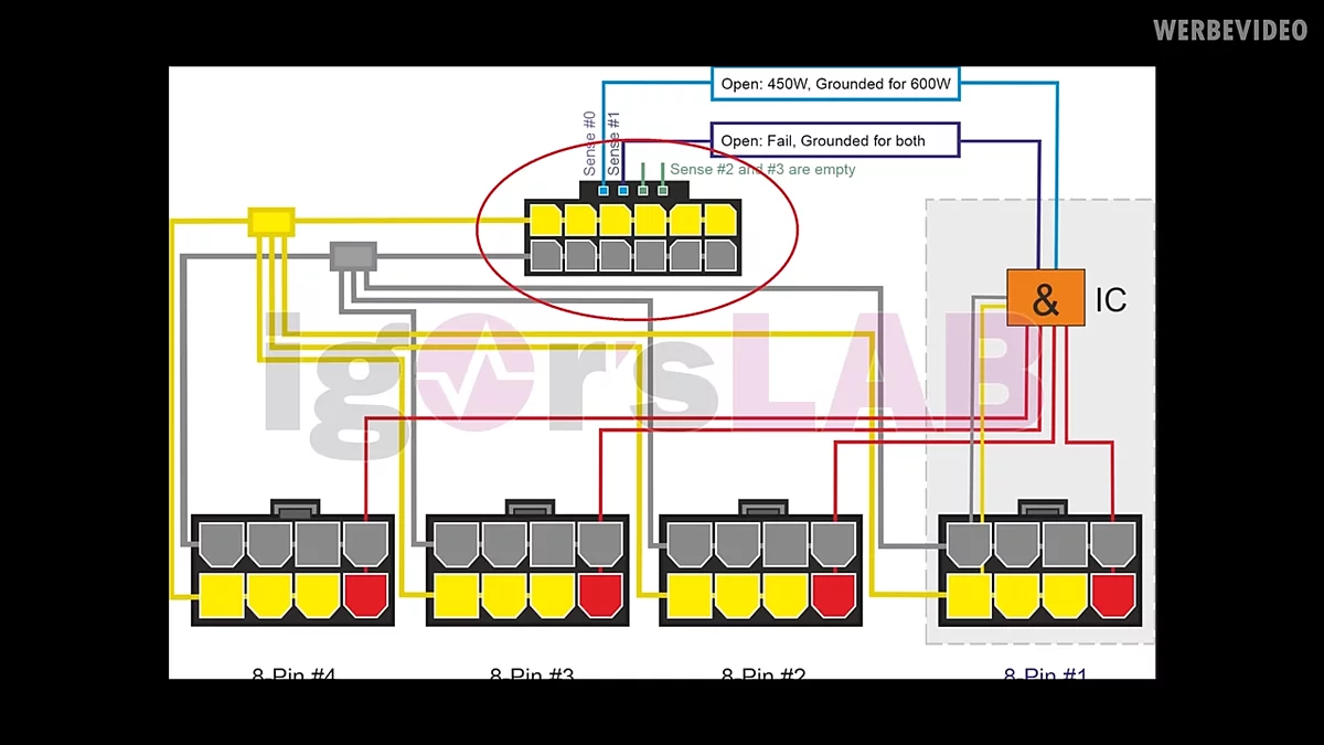 Було встановлено, що один з кабелів піддавався навантаженню понад 22 ампери — більше 260 Вт, що в рази перевищує його стандартні параметри (зазвичай 5-6 ампер). При цьому Der8auer використовував програму Furmark для максимального навантаження, що підкреслює нестандартні умови експлуатації.