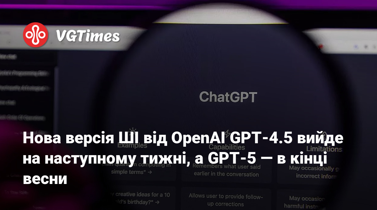 Нова версія ШІ від OpenAI GPT-4.5 вийде на наступному тижні, а GPT-5 — в кінці весни