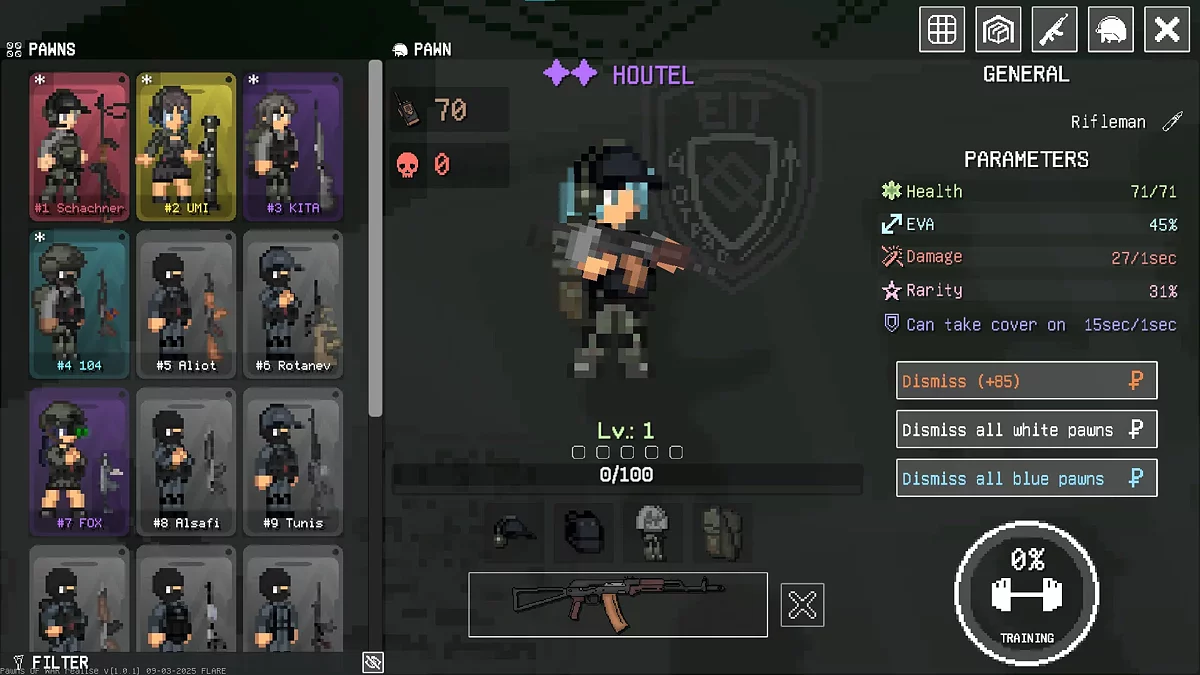 Pawns of War — піксельний автобатлер про війну між двома наддержавами. Сторінка в Steam.