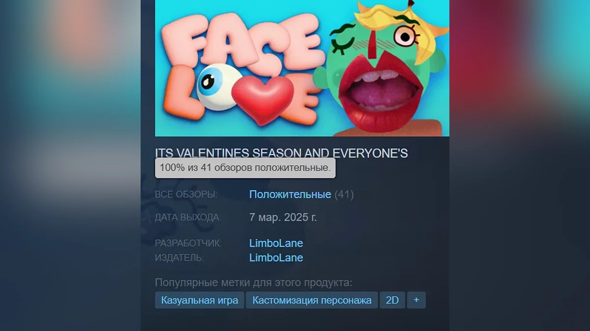 FACE LOVE: Face Designer — редактор створення кумедних облич з 100% рейтингом. Сторінка в Steam.