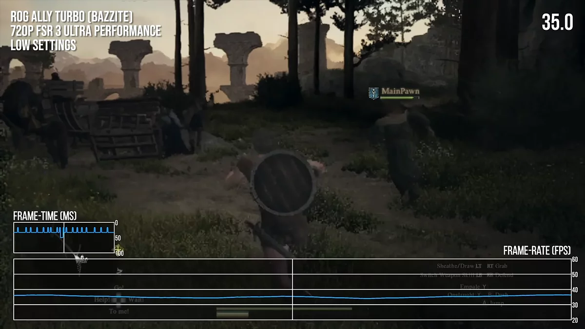ASUS ROG Ally, оснащений більш потужним APU AMD Z1 Extreme, демонструє інший підхід. У іграх, де Deck буксує, Ally зберігає плавність геймплея: Silent Hill 2 Remake — 40 fps, Space Marine 2 — 45 fps, а в Dragon's Dogma 2 — стабільні 35 кадрів. Навіть у вимогливому S.T.A.L.K.E.R. 2 пристрій видає 40–45 fps.