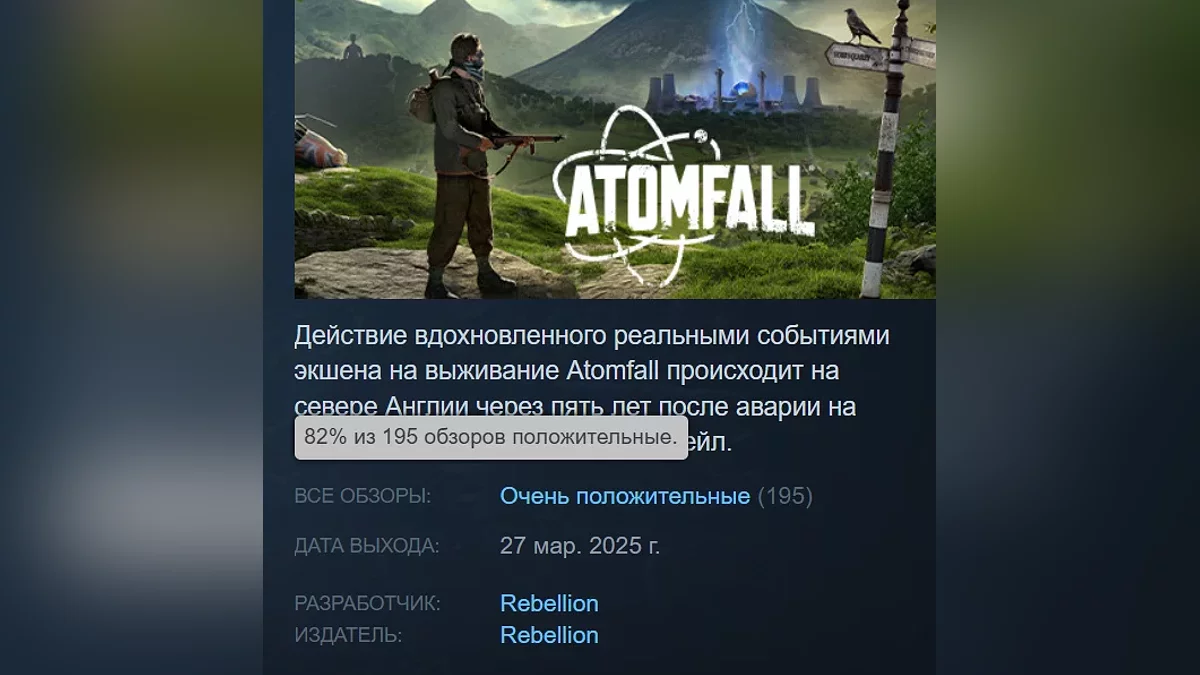 24 березня в Steam відбувся ранній реліз постапокаліптичного шутера на виживання Atomfall — гра стала доступна власникам делюкс-видання. Користувачі Steam вже оцінили новинку.