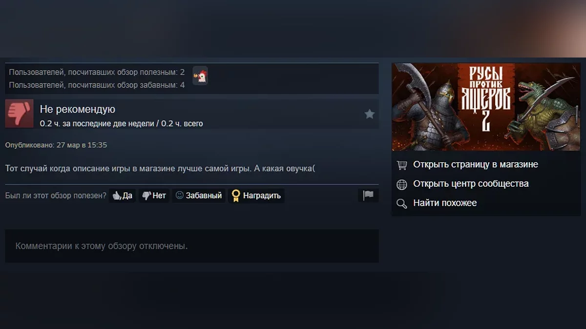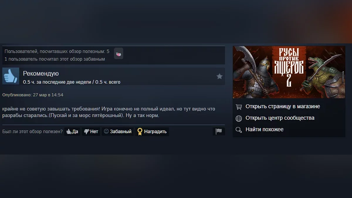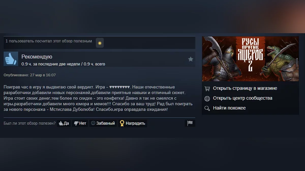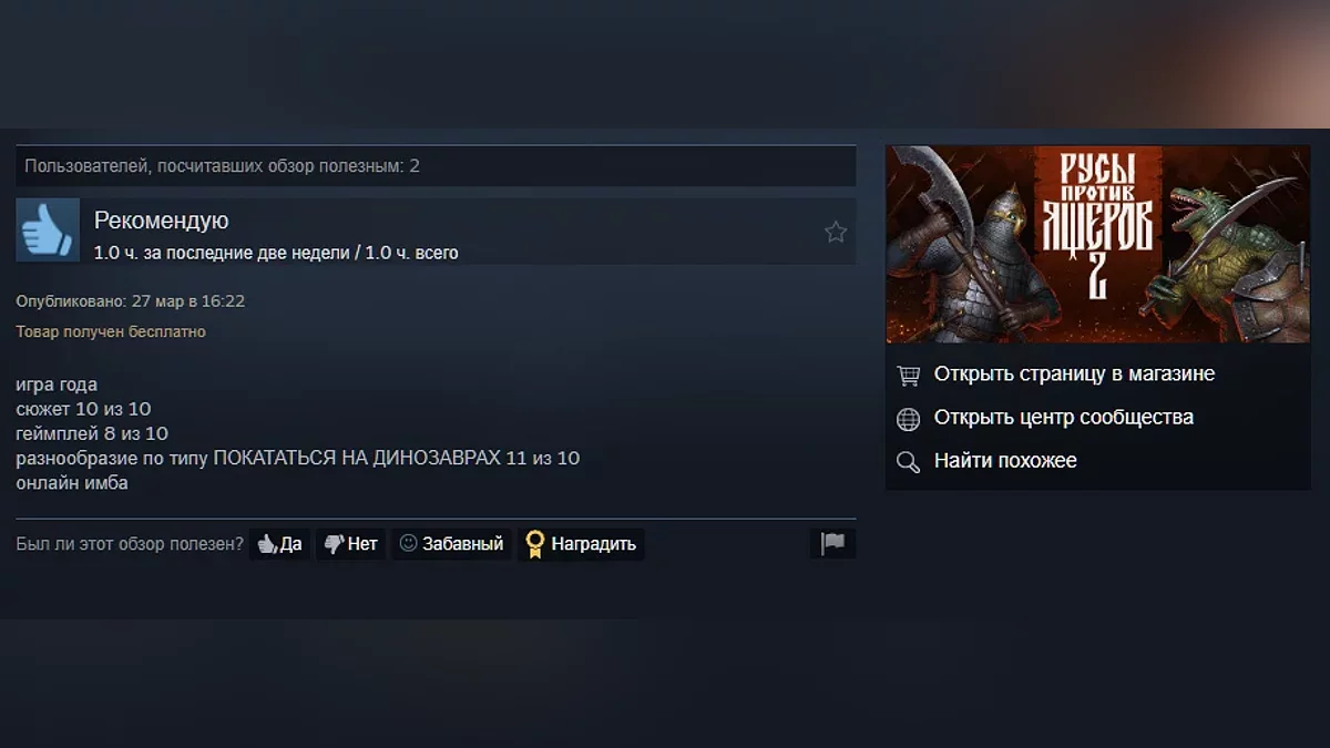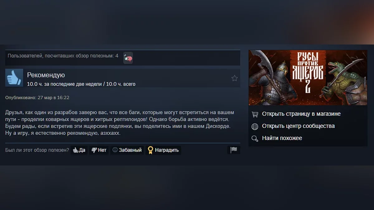 Пік російського геймдева (майже) настав — в російському Steam відбувся реліз нової частини «Руси проти ящерів». До 3 квітня гра продається зі знижкою за 300 рублів.