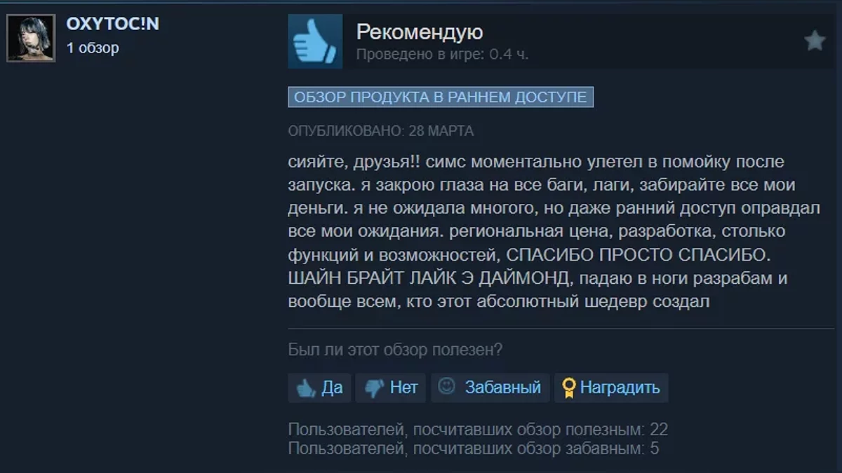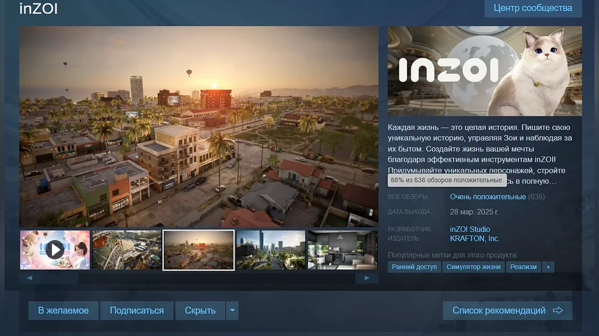 Після виходу симулятора життя inZOI в ранньому доступі Steam пройшло всього кілька годин, але гра вже встигла отримати більше 600 відгуків. На момент написання новини проект має рейтинг 88%.