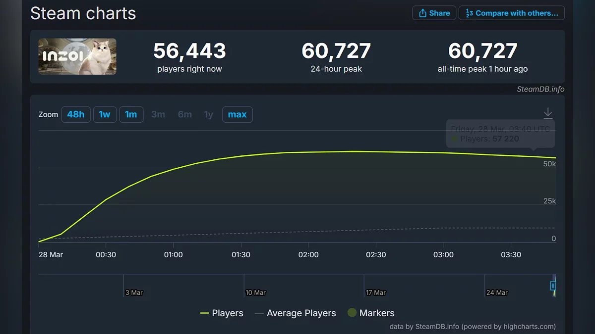 Що стосується онлайну, на момент написання новини в піковий момент у грі було зафіксовано 60,7 тис геймерів. Однак кількість гравців, ймовірно, буде ще вищою згодом.