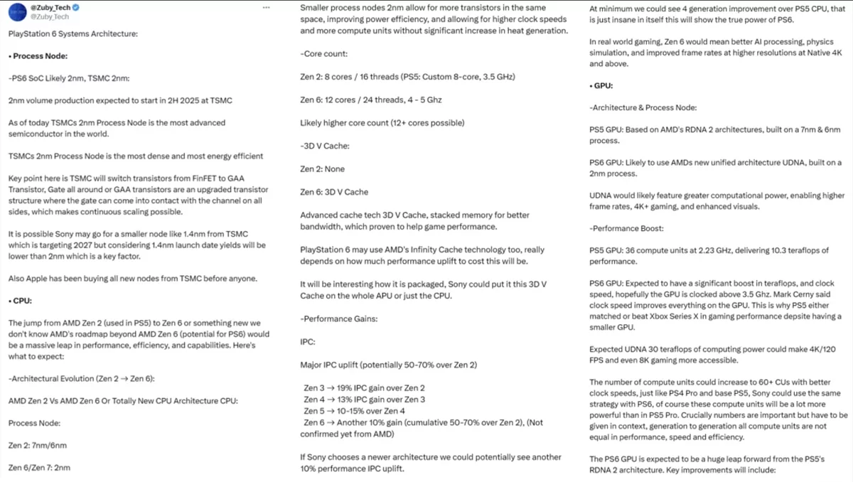 Відомий інсайдер Zuby_Tech, раніше точно передбачивши специфікації PlayStation Portal, розкрив деталі майбутньої PlayStation 6. Згідно з його даними, нова консоль Sony обіцяє стати технологічним проривом, об'єднавши передові апаратні рішення та інновації в галузі штучного інтелекту.