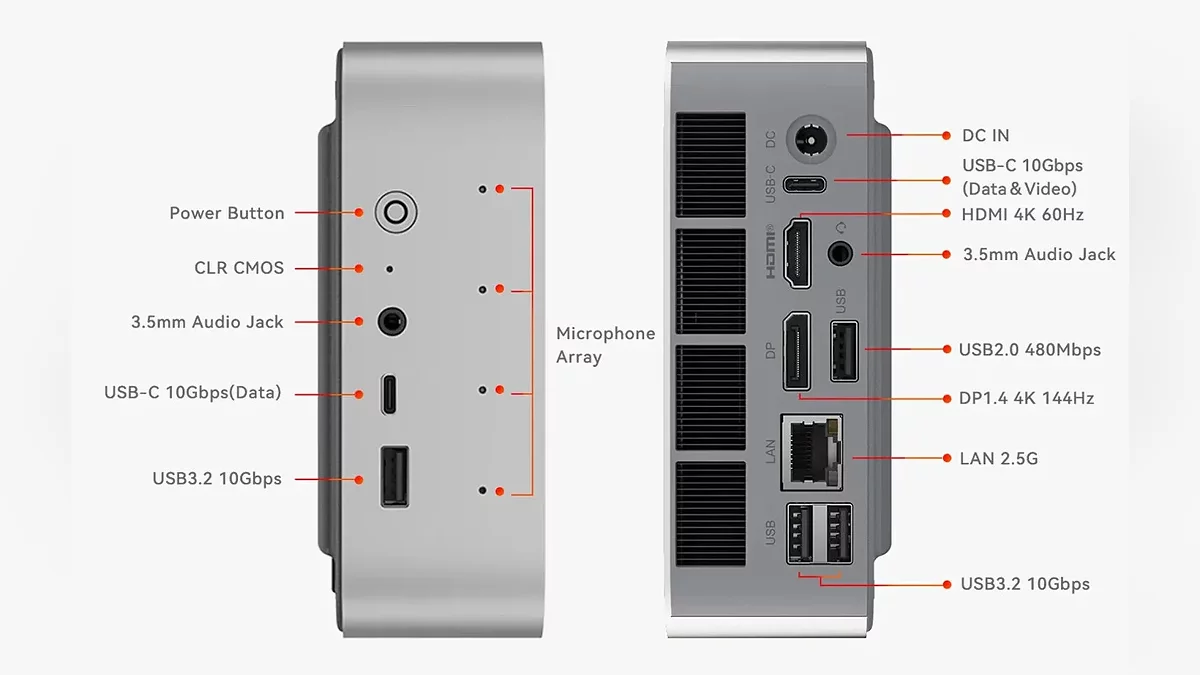 Незважаючи на відсутність портів USB4 та OCuLink (що виключає підключення зовнішніх відеокарт), модель пропонує різноманітні інтерфейси: два USB-C 10 Гбіт/с, три USB 3.2 Type-A, DisplayPort 1.4 та HDMI з підтримкою 4K. Це дозволяє одночасно підключати до трьох моніторів — опція, рідко зустрічається в міні-PC. Вартість базової версії SEi13 Pro становить $539, пристрій доступний у сірому та сріблястому кольорах через офіційний сайт Beelink.