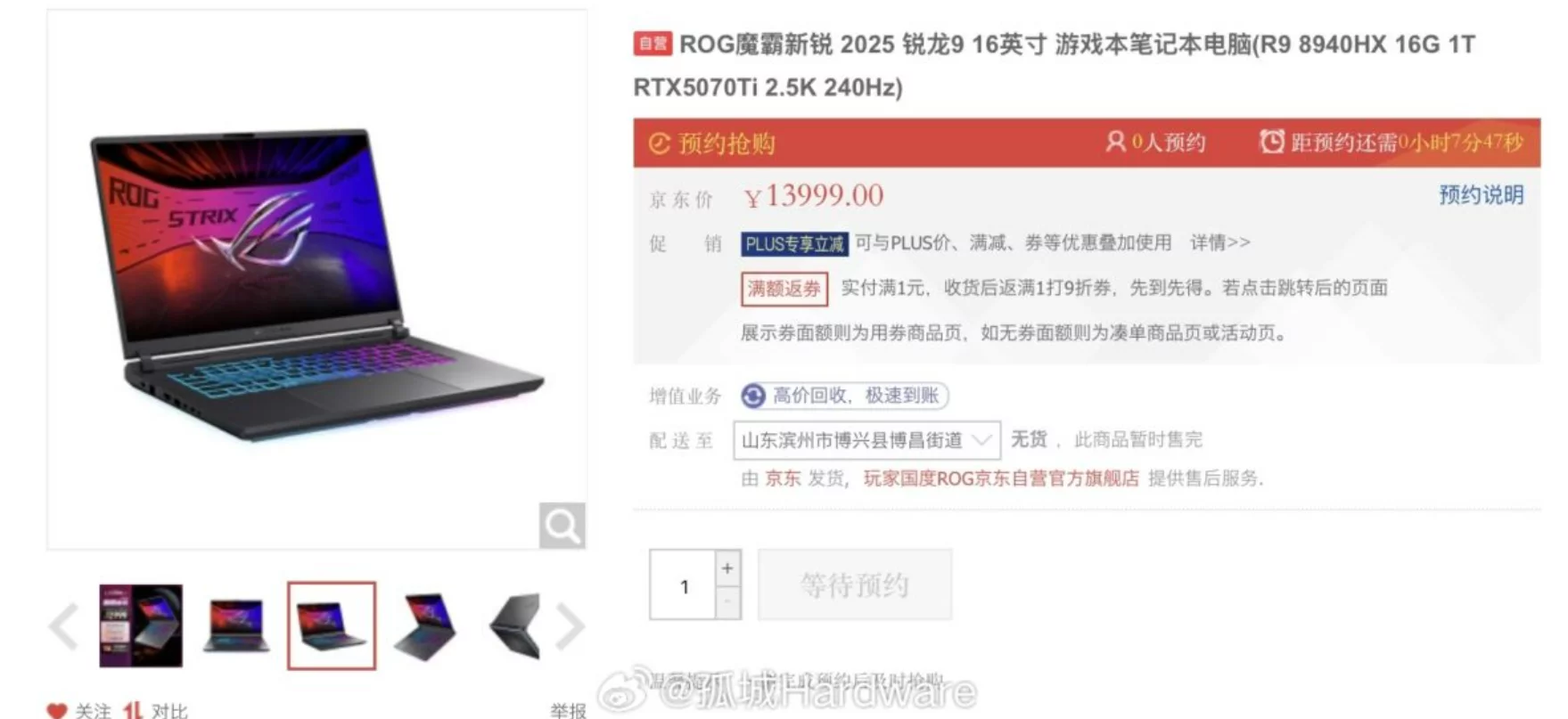 Згідно з даними, виявленими в китайських онлайн-магазинах, модель оснащена 16-ядерним CPU з максимальною частотою 5,3 ГГц — на 100 МГц вище, ніж у попереднього покоління Ryzen 9 7940HX. У комплектацію також входить дискретна відеокарта NVIDIA RTX 5070 Ti, 16 ГБ ОЗУ і накопичувач SSD на 1 ТБ. Вартість пристрою становить близько $1950 (близько 167 000 гривень), що значно вище цінників на аналоги з чипами Intel Core i9-13900HX або AMD Ryzen 9 7945HX.
