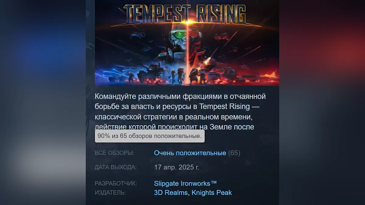 Слід згадати, що Tempest Rising потрапила в ТОП-10 найочікуваніших PC-ігор квітня в Steam.