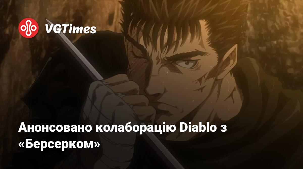 Компанія Blizzard анонсувала колаборацію Diablo 4 та Diablo Immortal з аніме та мангою «Берсерк». Подробиць поки немає, але є короткий чорнобілий тизер, де можна побачити гігантський меч Гатса,