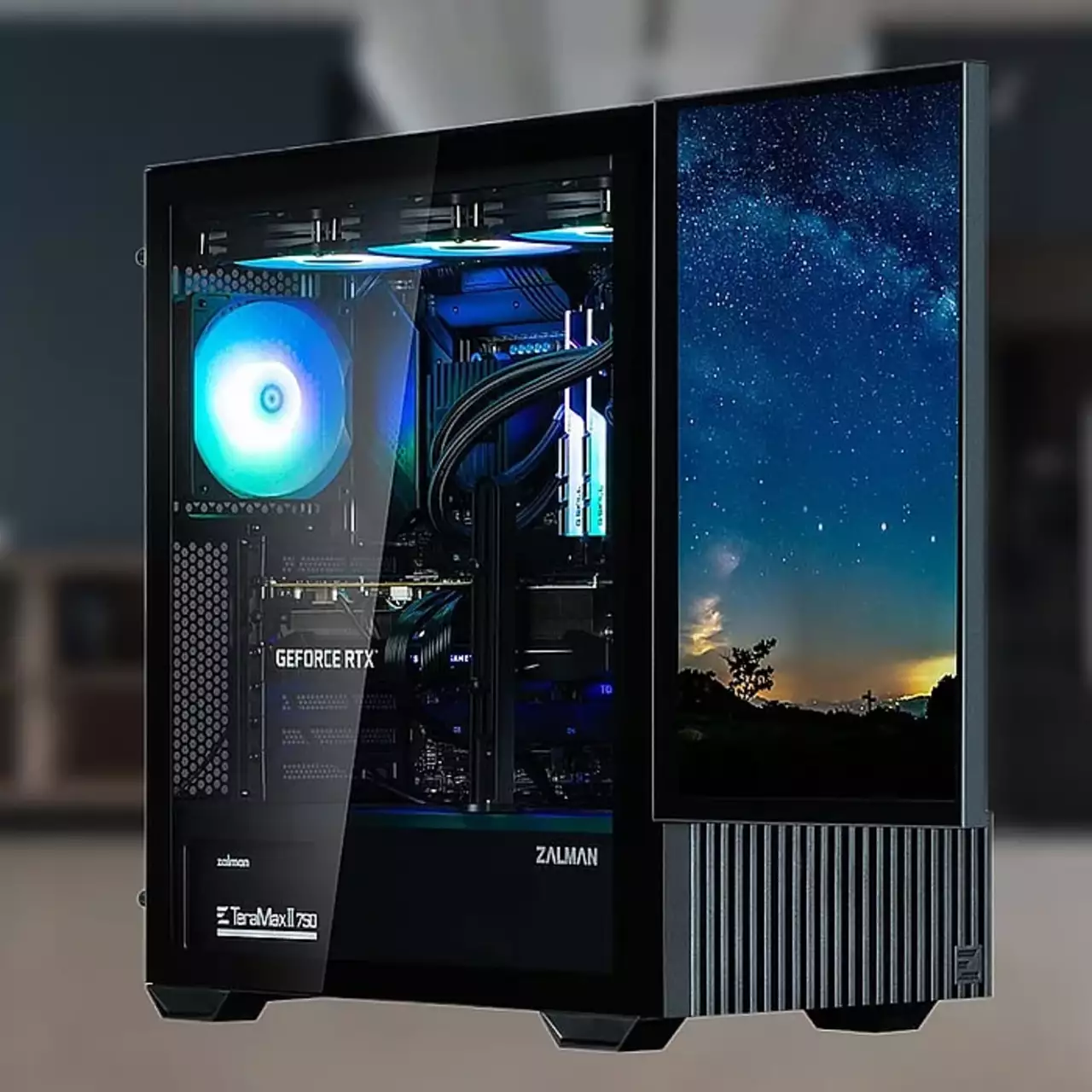 Z10 DS зберіг базові характеристики лінійки: підтримку материнських плат ATX і Micro-ATX, можливість установки відеокарт довжиною до 395 мм і процесорних кулерів висотою 173 мм. Внутрішній простір включає відсіки для двох 3,5"/2,5" накопичувачів і двох 2,5" SSD. Для вертикального монтажу GPU передбачені три слоти, але перехідник і кріплення вимагають окремої покупки. У комплектацію входять три 120-мм вентилятори: один ARGB на задній панелі з фіксованою швидкістю до 1100 об/хв і два не підсвічуваних спереду (максимум 1200 об/хв). Додатково можна встановити до п'яти вентиляторів.