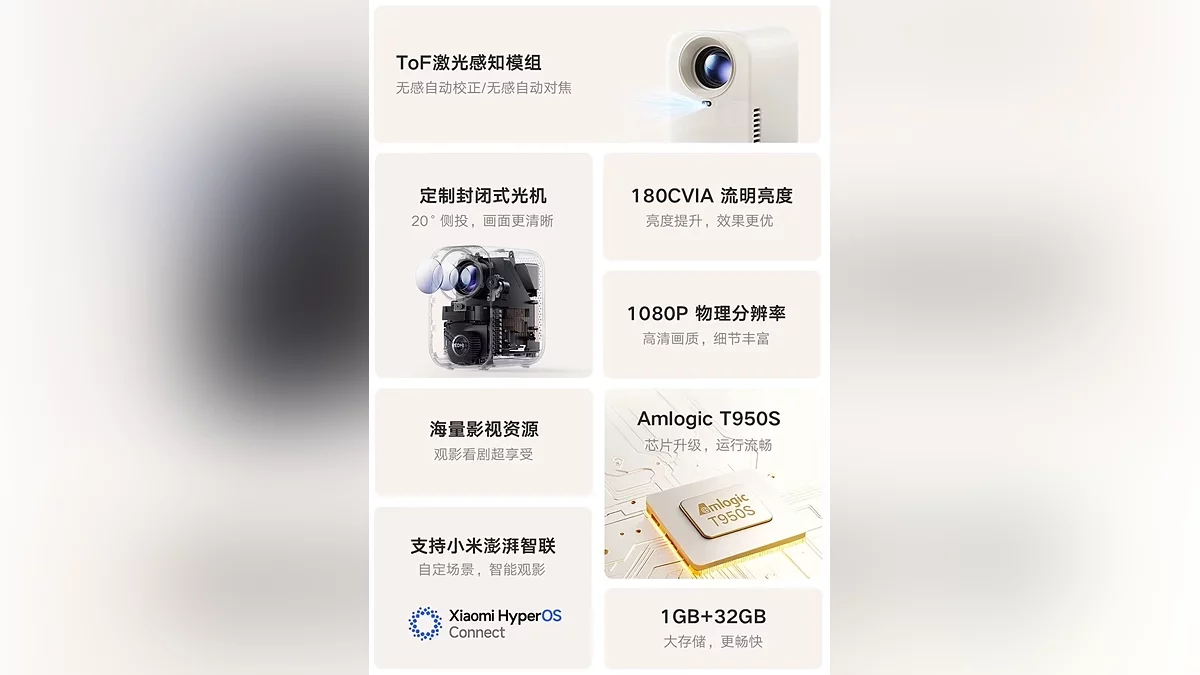Для підключення зовнішніх джерел передбачені HDMI з підтримкою ARC, USB 2.0 та аудіороз'єм 3,5 мм. Керування спрощує Bluetooth-пульт з голосовим введенням, а компактні габарити (146×113×172,5 мм) та вага 1,2 кг дозволяють легко переносити пристрій між кімнатами або брати в поїздки. Вартість пристрою становить 699 юанів (приблизно 8 000 рублів), а старт продажів заплановано на 22 квітня, поки тільки в Китаї, але через кілька місяців очікується глобальний реліз.