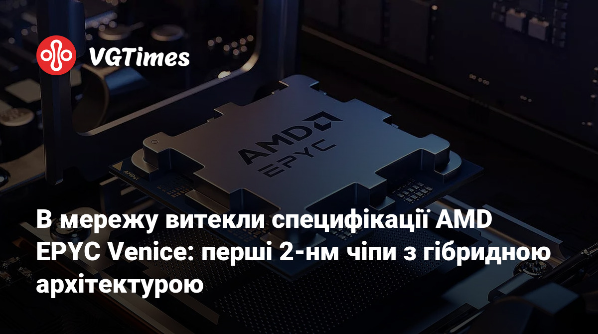 В мережу потрапили технічні характеристики майбутніх процесорів AMD EPYC шостого покоління під кодовою назвою Venice. Згідно з даними з форуму Tieba Baidu, чипи стануть першими в галузі, виготовленими за 2-нм технологією TSMC, що обіцяє підвищення продуктивності та енергоефективності.