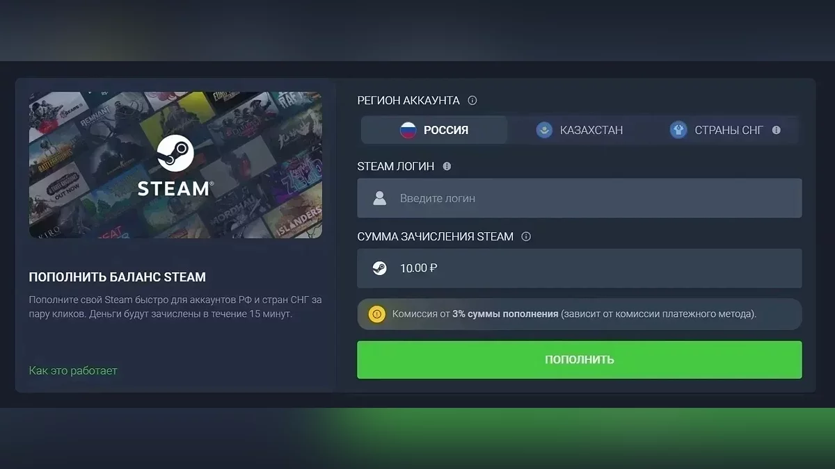 Крім того, геймери також можуть поповнити баланс Steam (з 3% комісією сервісу) на будь-яку суму від 10 грн.