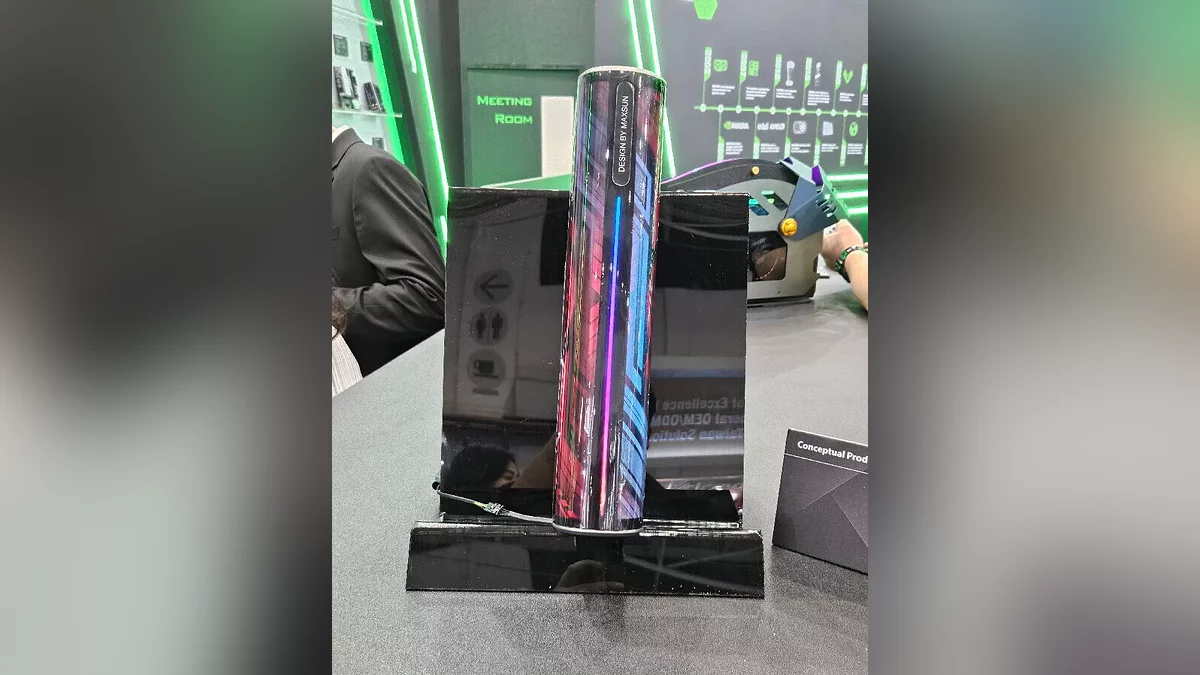 Концепт виконаний у прозорому монолітному корпусі з вбудованою системою рідинного охолодження, трубки якої приховані під поверхнею. Замість традиційної підсвітки RGB-елементи рівномірно розподілені по всьому кожуху, створюючи ефект «свічення зсередини». За даними спостерігачів, компанія також експериментує з заміною підсвітки на гнучкий OLED-екран, який може відображати анімовані зображення.