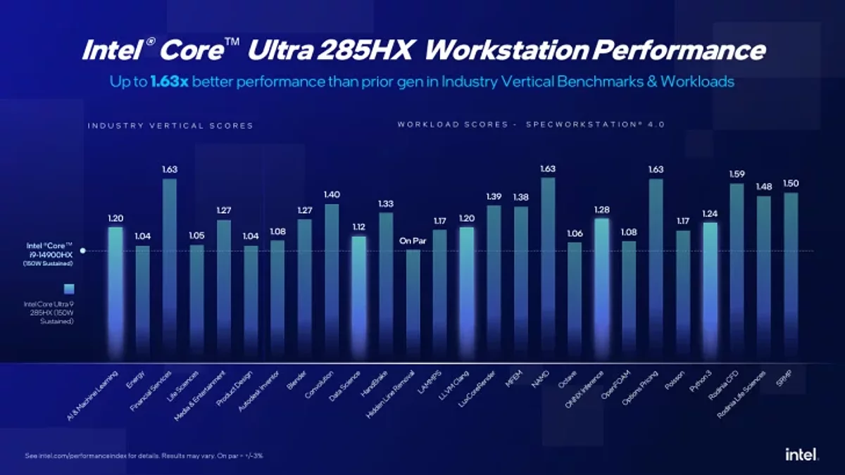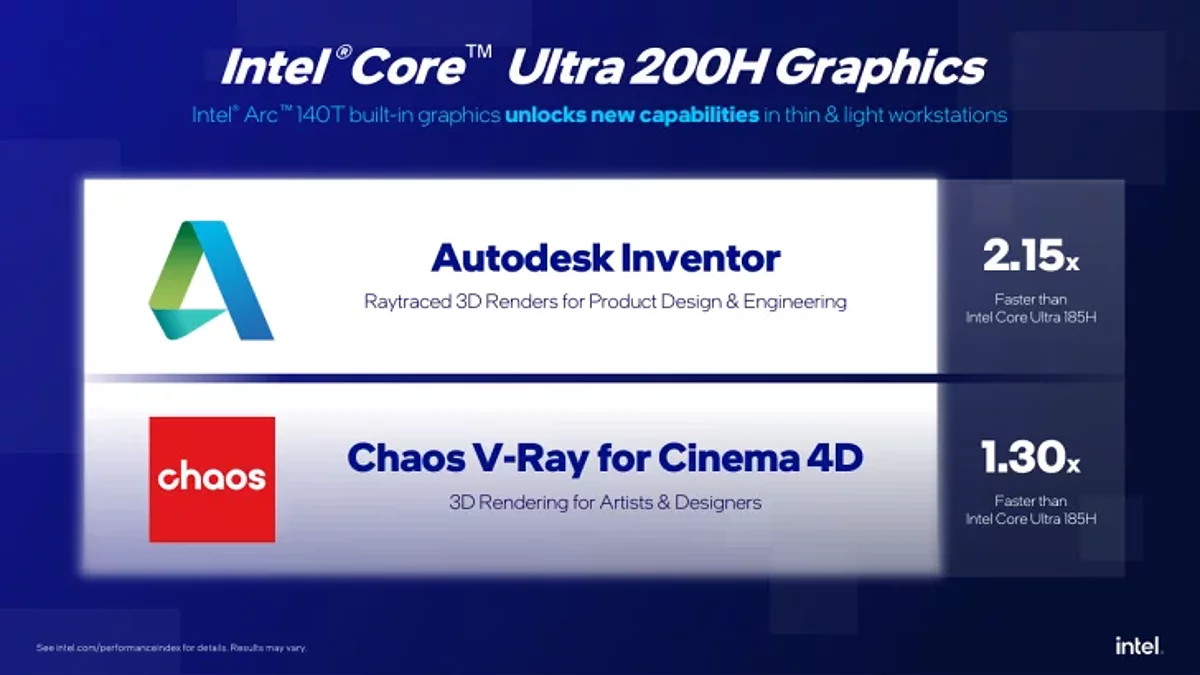 Інтегрована графіка Arc 140T у Core Ultra 200H, за даними Intel, вдвічі швидше справляється з рендерингом в Autodesk Inventor у порівнянні з попереднім поколінням. Ціни поки не розкриваються, але Intel підкреслює, що нові рішення націлені на бюджетний сегмент. Оновлення лінійки вказує на посилення конкуренції в сегменті робочих станцій, де раніше домінували рішення AMD. Тепер користувачі можуть вибирати між продуктивністю та вартістю, не жертвуючи ключовими функціями, такими як підтримка ECC-пам'яті або професійного ПЗ.
