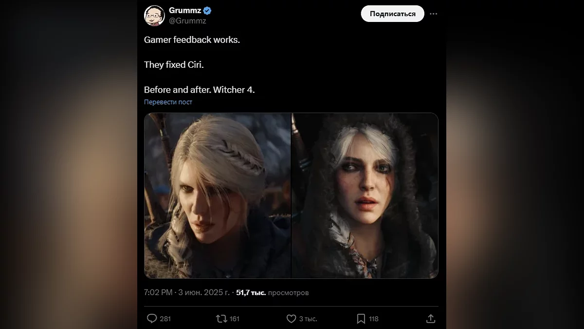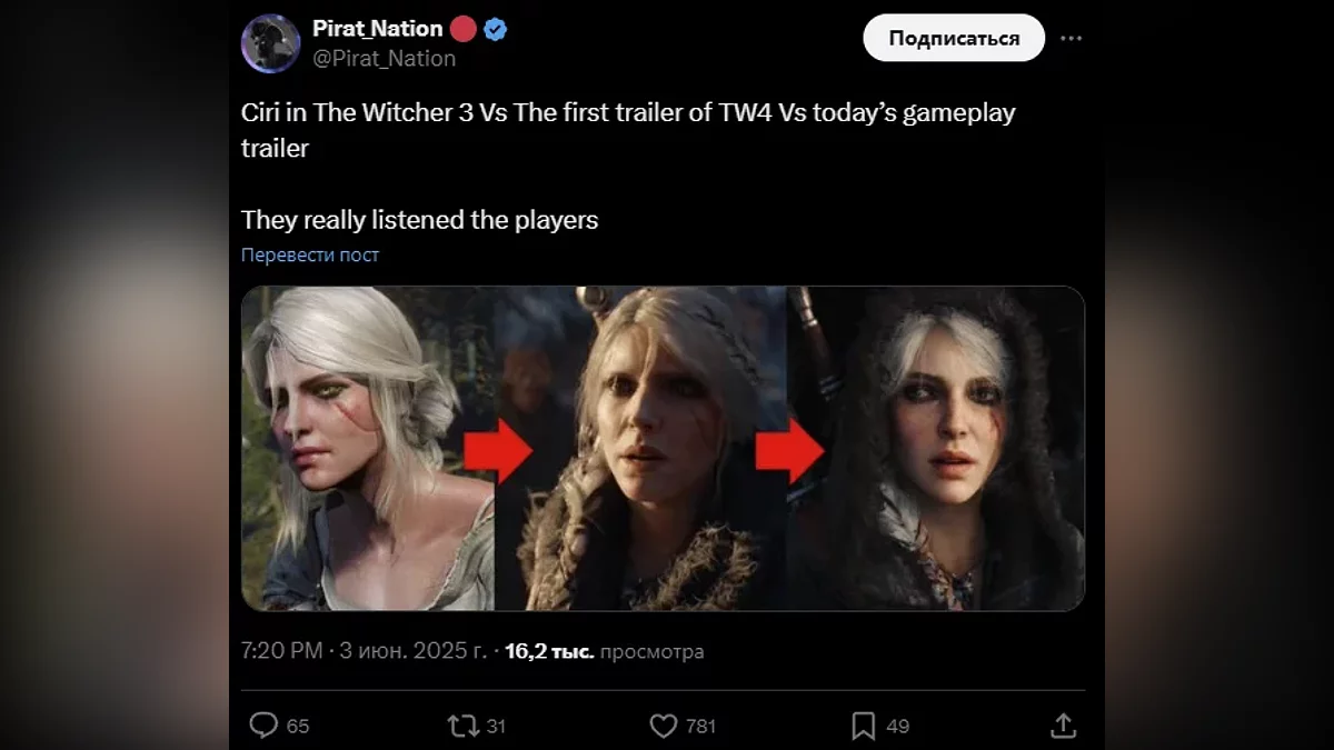 Судячи з перших реакцій, багато гравців все ж вважають, що CD Projekt RED встигла щось змінити у зовнішності Цирі. Як би там не було, тепер вони повністю задоволені результатом.