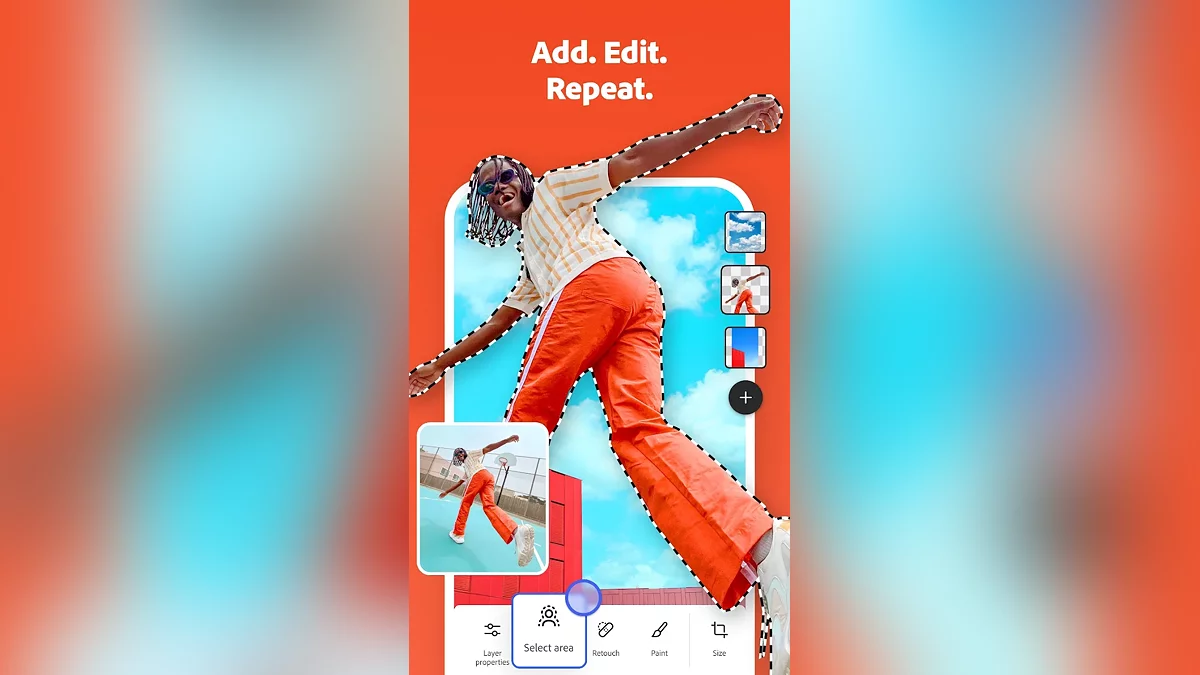 Користувачі можуть працювати зі шарами, масками, складними виділеннями (включаючи Object Select і Magic Wand), ретушувати знімки інструментами Spot Healing Brush і Clone Stamp, а також застосовувати режими накладення і кольорокорекцію — все адаптовано під управління пальцями. Особливий інтерес викликає інтеграція генеративного ІІ Firefly. Функція Generative Fill дозволяє прямо на телефоні додавати, змінювати або видаляти об'єкти в зображеннях простими текстовими запитами.