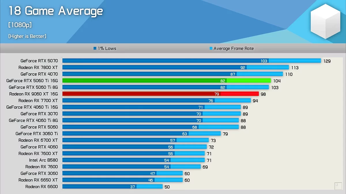 На YouTube-каналі Hardware Unboxed з'явився детальний розбір продуктивності нової відеокарти AMD Radeon RX 9060 XT 16 ГБ. Оглядачі провели серію ігрових тестів, щоб оцінити позиціонування новинки на ринку.