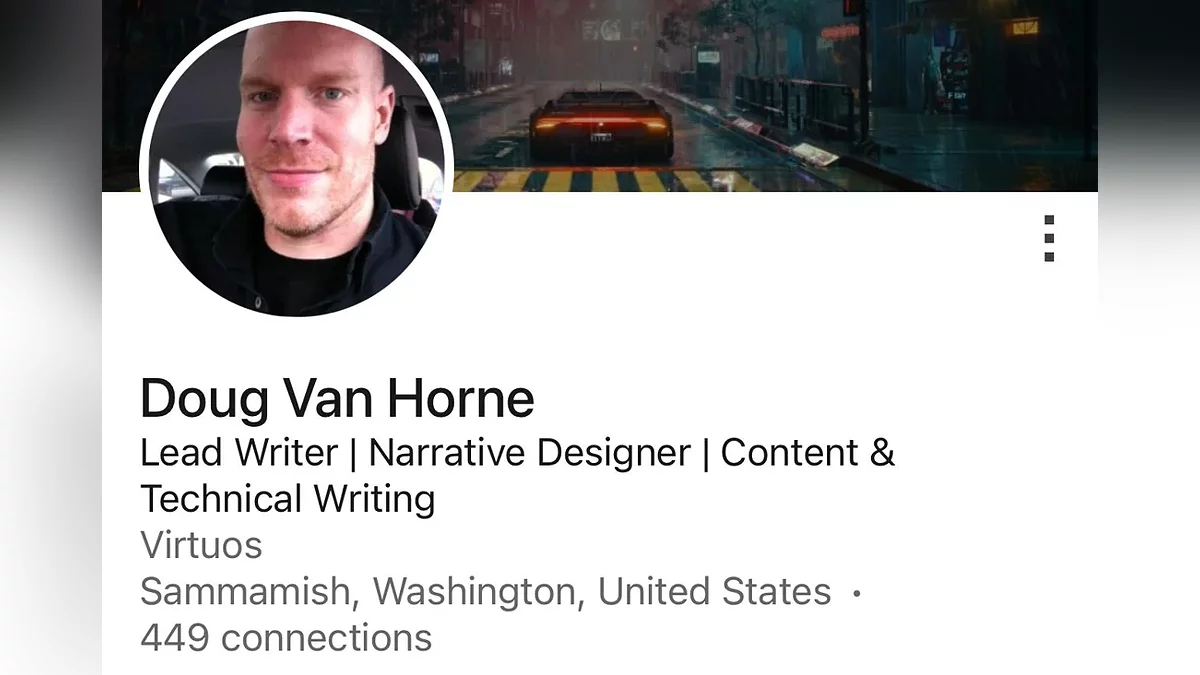 Похоже, CD Projekt RED ніяк не може завершити підтримку Cyberpunk 2077. Сьогодні уважний користувач мережі помітив, що старший сценарист Virtuos Даг Ван Хорн (Doug Van Horn) працює над «доповненням» для рольової пригоди. Така інформація була вказана на його сторінці в LinkedIn.