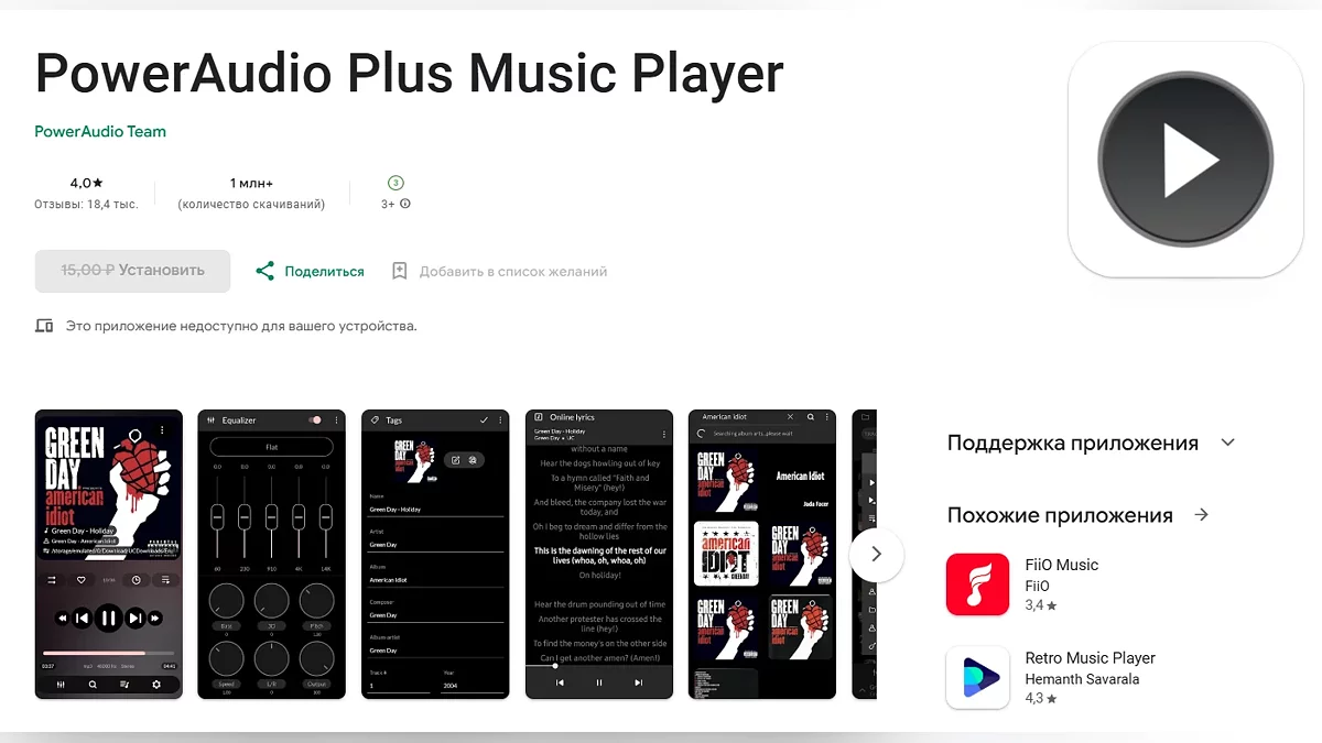 - PowerAudio Plus Music Player — альтернативний музичний плеєр (завантажити безкоштовно);