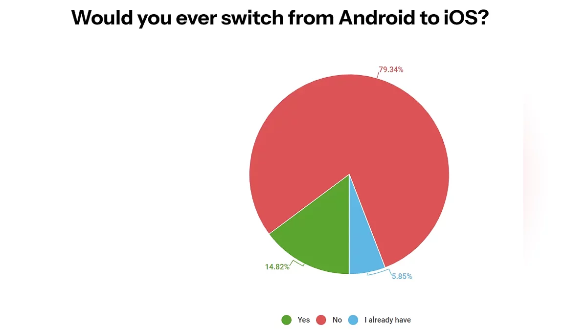 Недавнє опитування, проведене закордонним ресурсом Android Authority, показало: абсолютна більшість власників Android-смартфонів не планують переходити на пристрої Apple. З майже 13 тисяч учасників опитування близько 80 % відповіли, що не розглядають можливість переходу на iOS. Незважаючи на визнання сильних сторін екосистеми Apple, таких як стабільність і інтеграція пристроїв, Android залишається більш зручною платформою.
