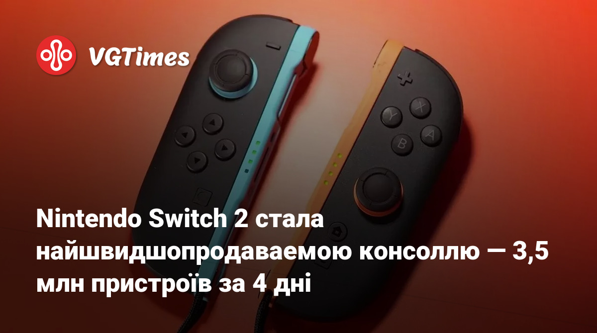 Nintendo Switch 2 стала найшвидшопродаваемою консоллю — 3,5 млн пристроїв за 4 дні