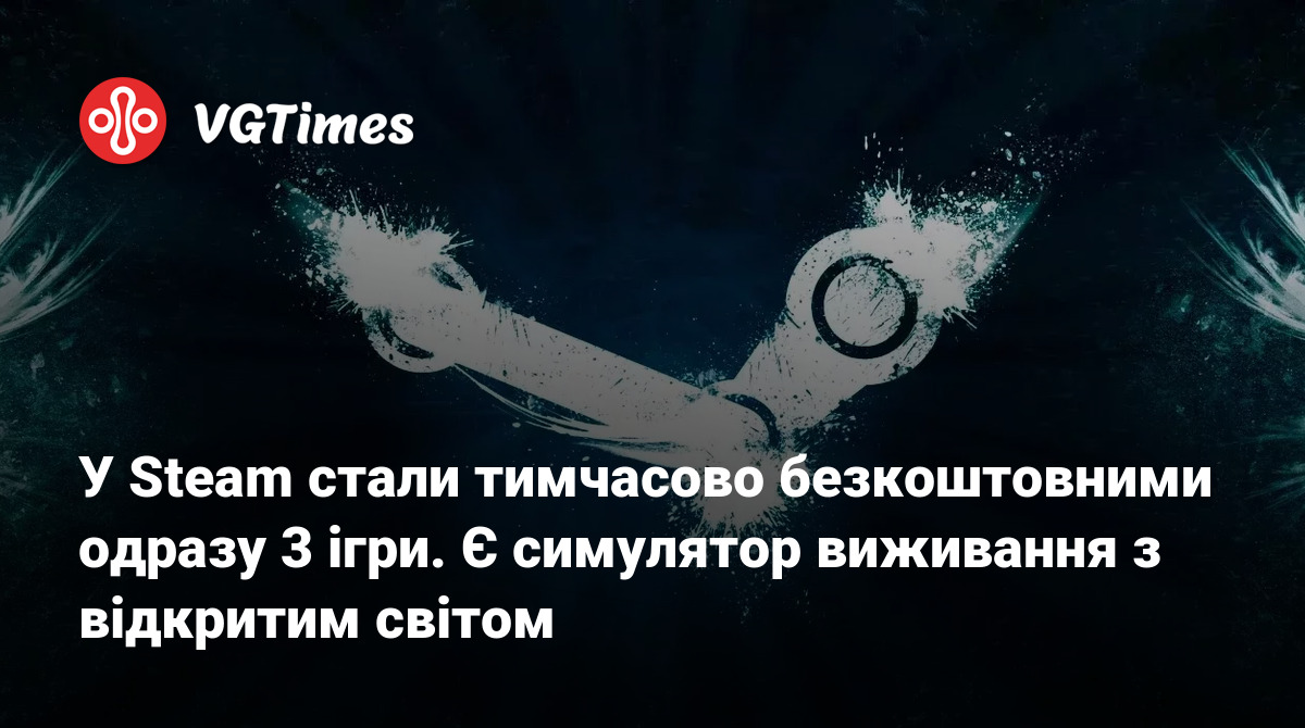 У Steam стали тимчасово безкоштовними одразу 3 ігри. Є симулятор виживання з відкритим світом
