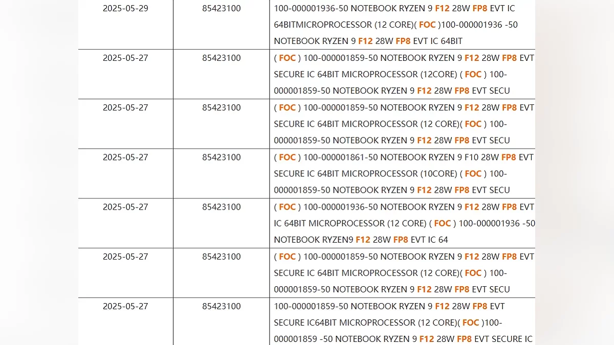 В мережі з'явилися дані, які вказують на те, що AMD активно готує до виходу оновлені мобільні процесори. Інформація основана на виявлених записах у відвантажувальних маніфестах компанії NBD, де фігурують раніше невідомі коди продуктів. У документах зафіксовані три специфічних ідентифікатора: 100-000001936-50, 100-000001859-50 та 100-000001861-50. Згідно з аналізом ентузіастів, ці коди, ймовірно, відповідають майбутнім моделям: Ryzen AI 9 HX 475 Pro, Ryzen AI 9 HX 475 та Ryzen AI 9 HX 465. Основуючись на використовуваному сокеті FP8, ці чіпи пов'язують з проєктом Gorgon Point.