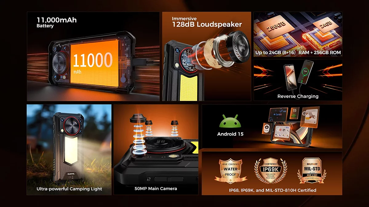 В продажу поступив захищений смартфон Oukitel WP53 Pro з величезною батареєю та ліхтарем. Новинка від китайської компанії Oukitel позиціонується як доступний, але надзвичайно витривалий апарат для активного використання. Його ключовою особливістю стала акумуляторна батарея рекордної ємності 11 000 мА*год, що обіцяє до 5-6 днів роботи без підзарядки при максимальному навантаженні та до 1000 годин у режимі очікування. Батарея також підтримує функцію зворотної зарядки інших пристроїв через USB-C.