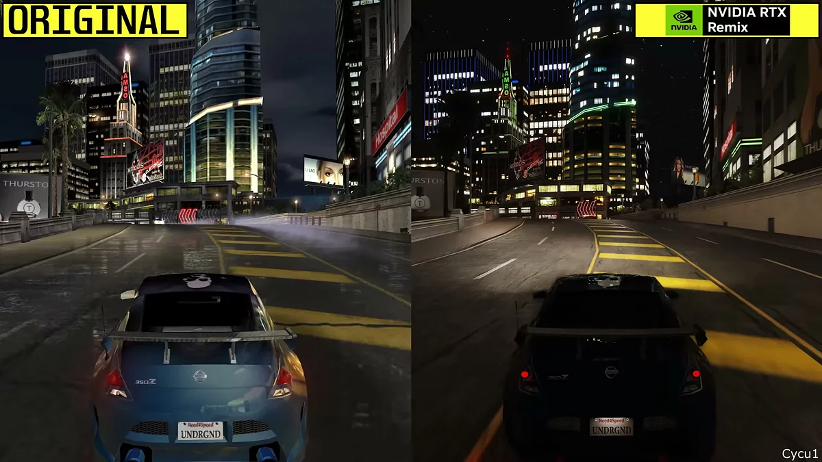 Автор YouTube-каналу Cycu1 опублікував відео зі зіставленням оригінальної Need For Speed: Underground та остання версія фанатського ремастера — NFS: Underground RTX Remix.